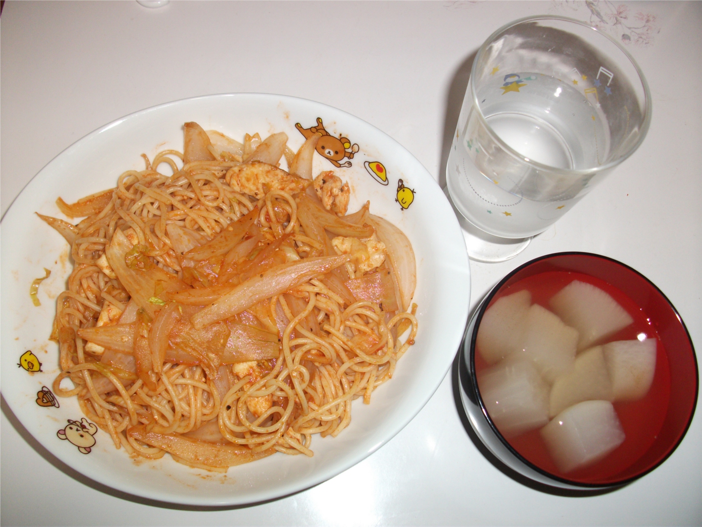 今夜はナポリタン&大根冷や汁です。