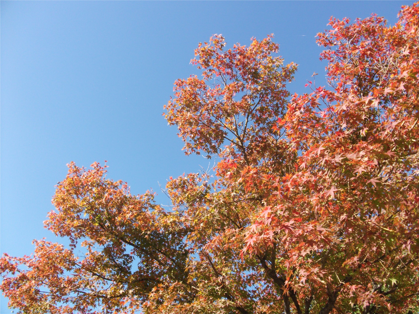 間近で見ると山吹色の所もまだ多く残っていたし、楓もベランダから見たよりも色付いていた。