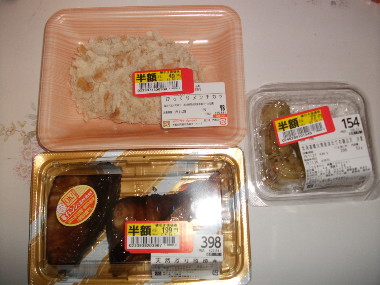 他に本日が消費期限のパンを3個購入。