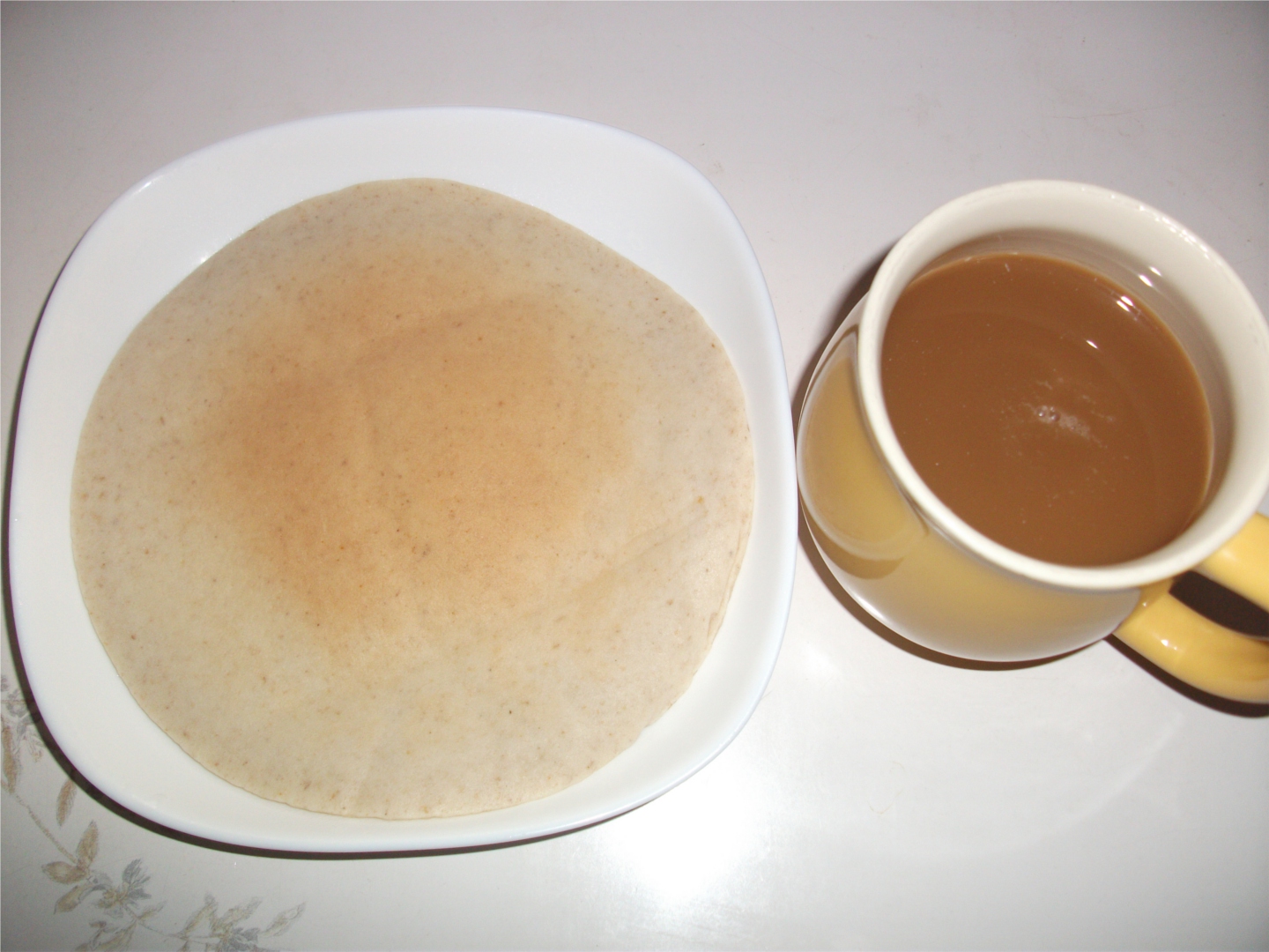 今朝のごはんは昨夜のごはん時に胡麻ホットケーキを作っておきました。