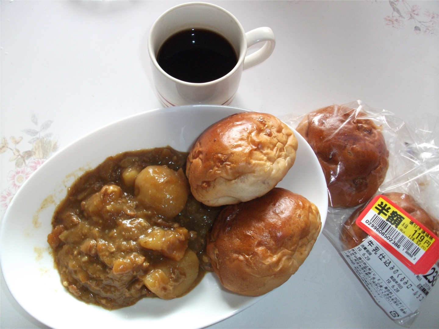 お昼はカレーうどんを考えていましたが、とりあえずはパンとカレーです。
