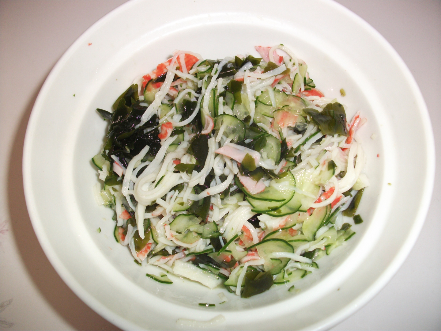 とりあえず、ワカメ・きゅうり・カニカマの作り置きおかずを作った。