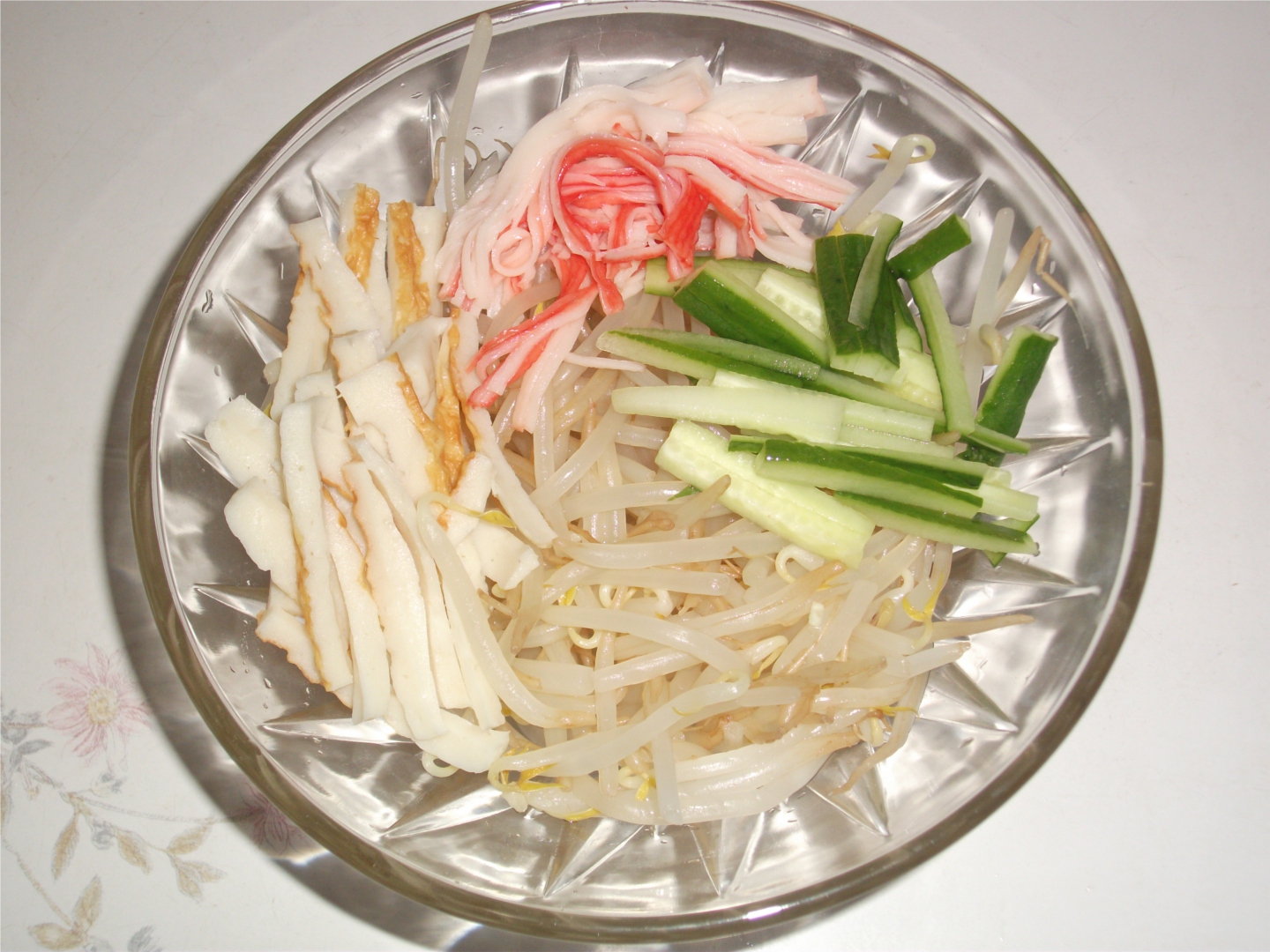 今夜は遅めになるので酸っぱい中華冷麺風にすると喉が渇いて水分を多めに取りそうなので、サラダ風にします。