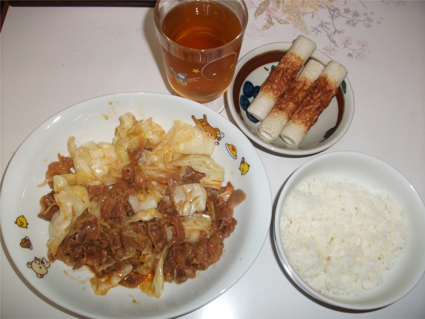 はじめは丼ご飯に乗せようと思っていたのですが油が半端なく多く、急遽キャベツを一緒に炒める事にしました。