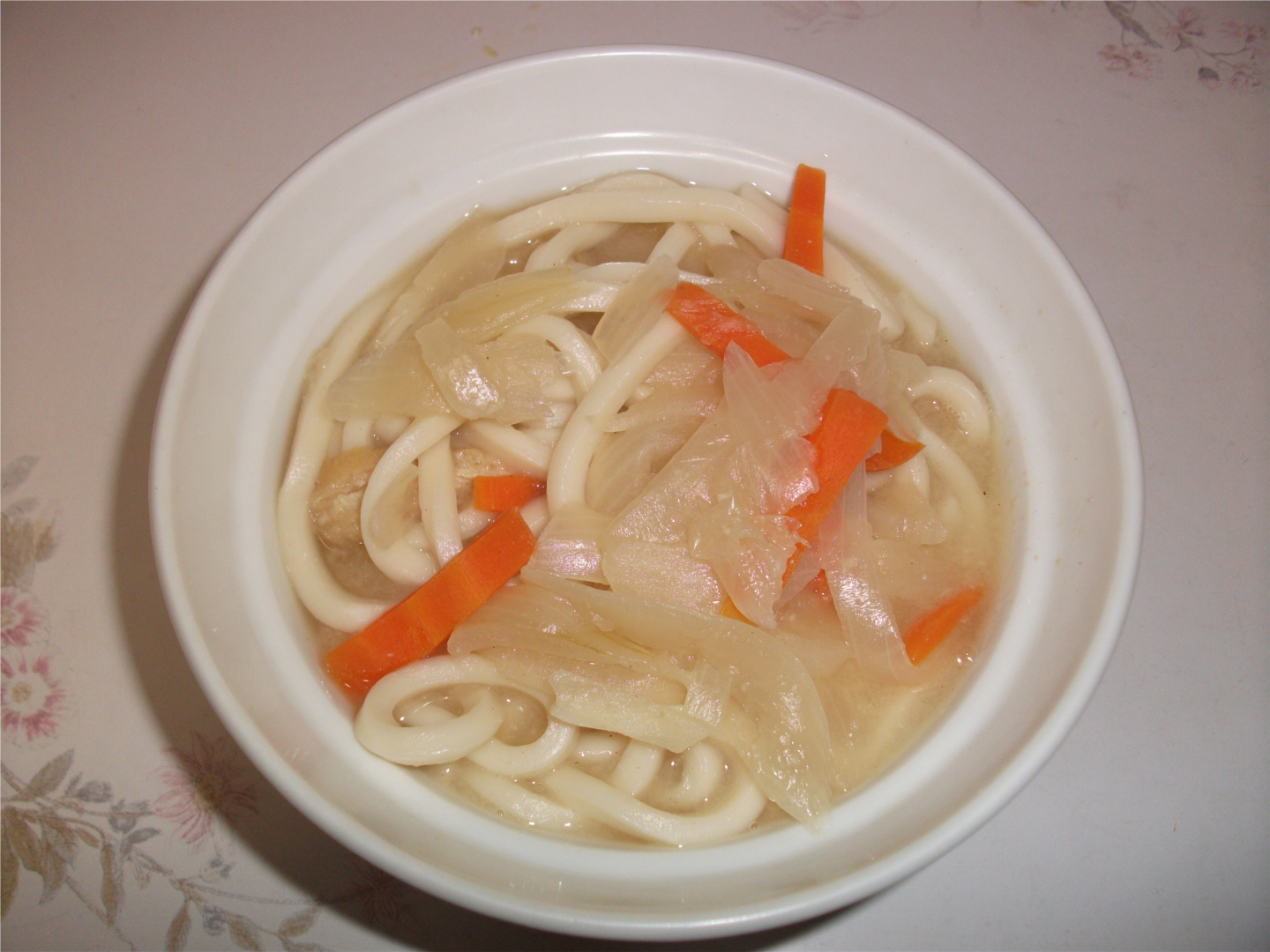 今夜のごはんは味噌汁も大分残っているので味噌汁ベースのうどんにしました。
