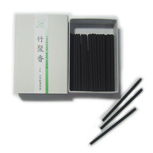 京都竹と白檀、龍脳などの香原料とを聚めたお香です。空気清浄効果の強い代表的な原料を使用しており、湿気や匂いの気になるところにおすすめです。香りは、白檀と龍脳の涼やかさを生かしており、たいていただくと心やすらぐ香りが広がります。