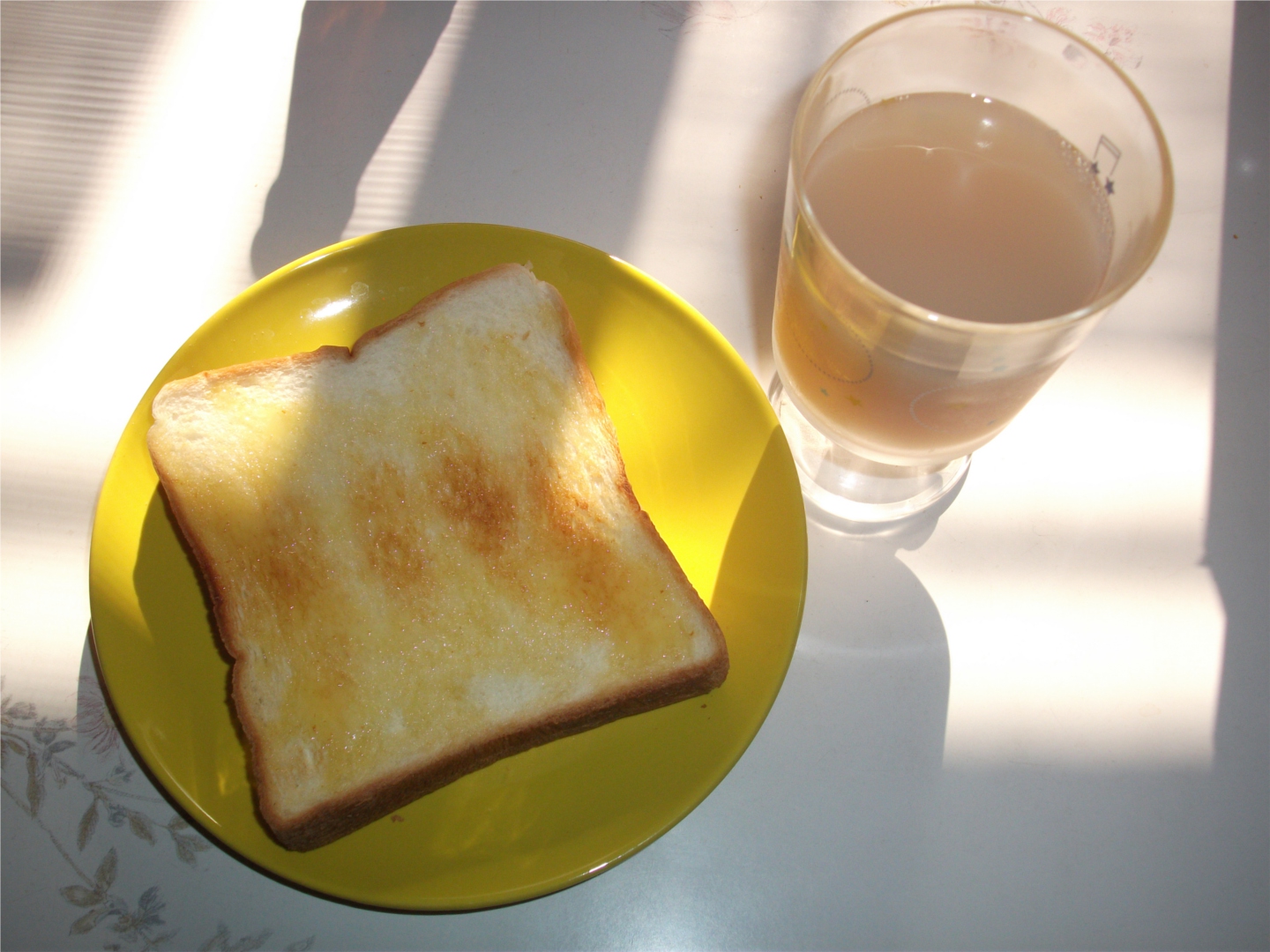 朝はマーガリントースト&乳酸菌飲料、お昼は冷やしうどん
