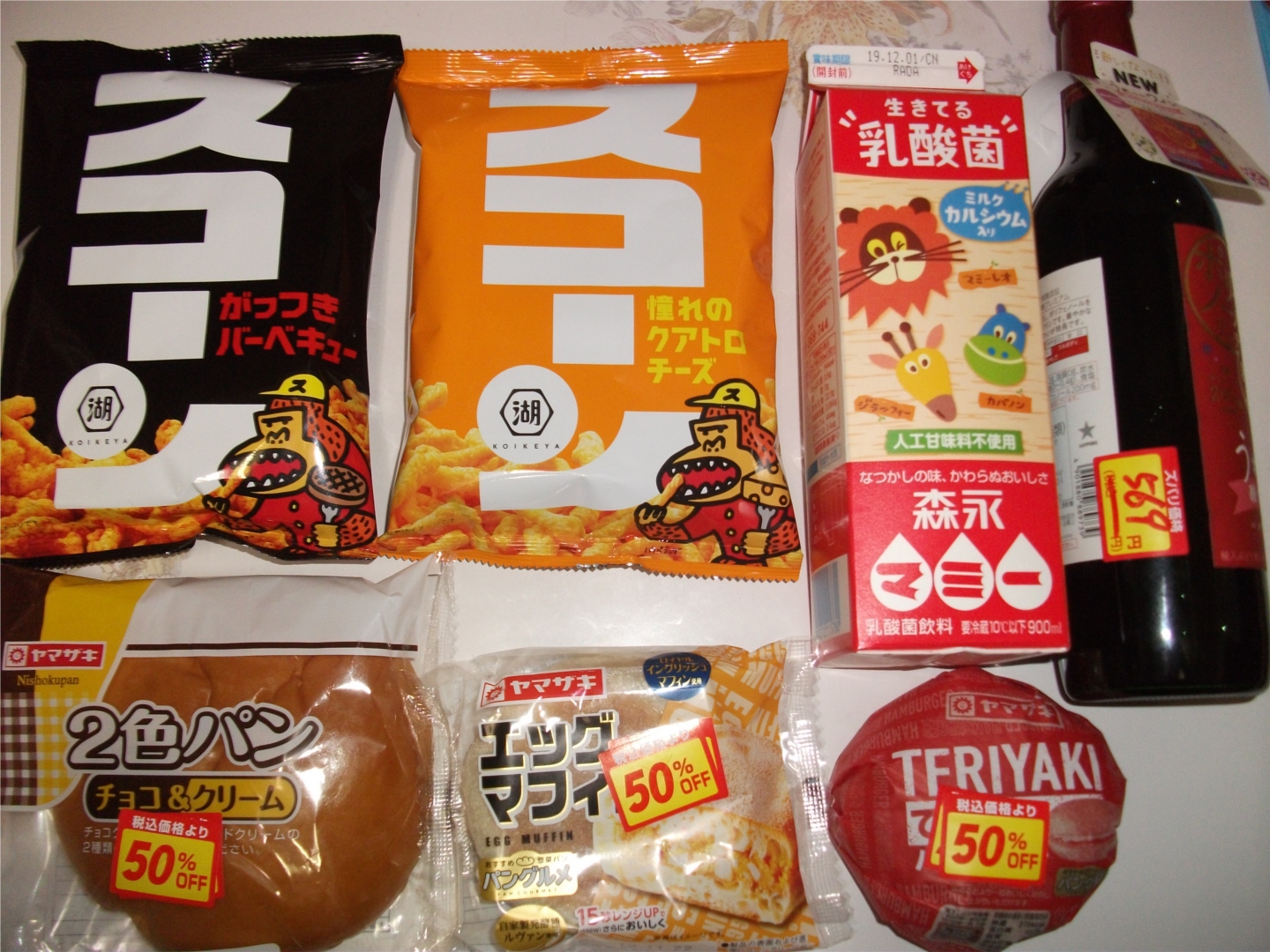 他に本日が消費期限のパンを3個購入。