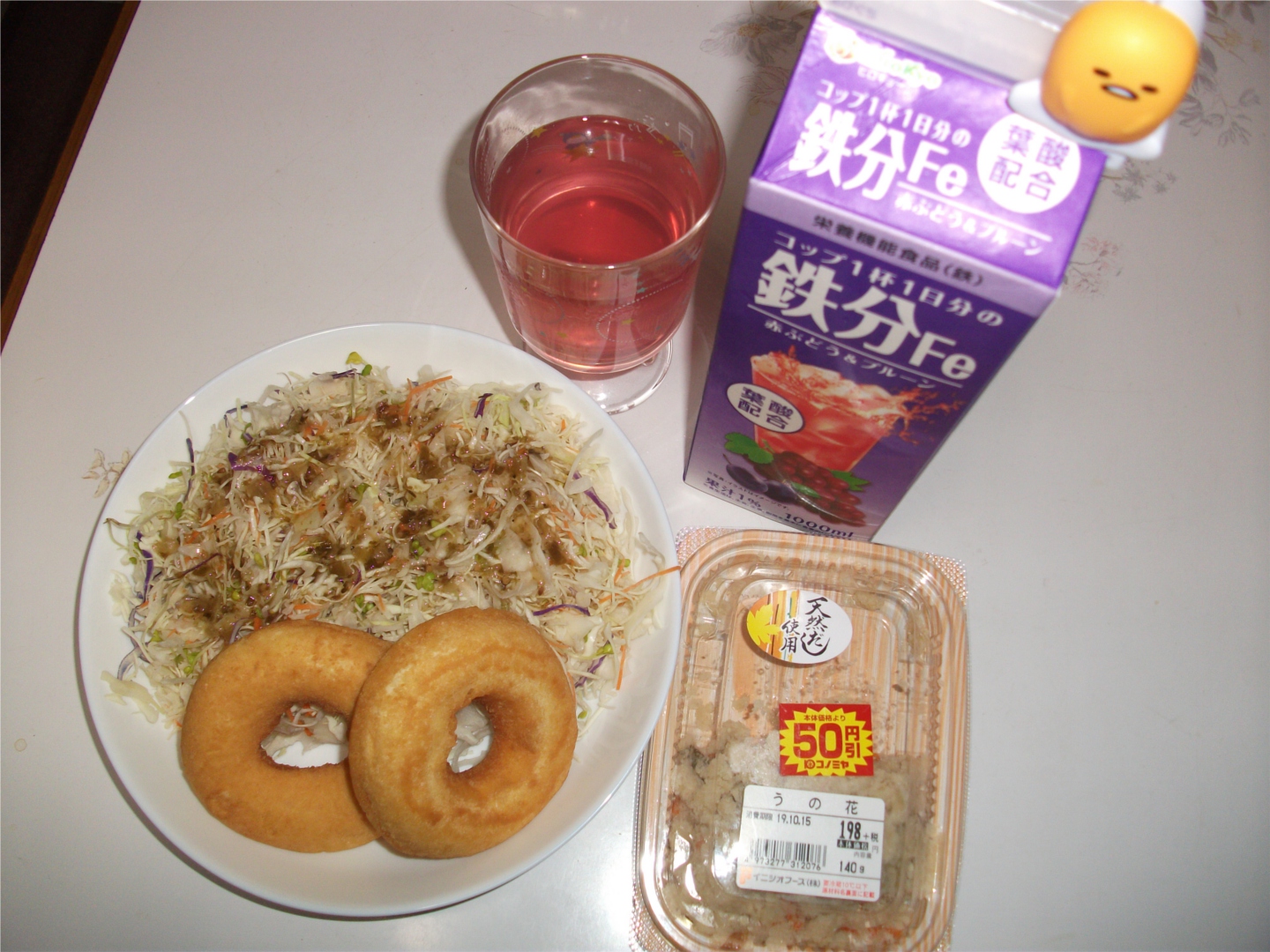 昨夜、晩ごはんのあと野菜サラダとドーナツ・食べ忘れたおからを食べ、そのあたりまでは晩ごはんのうちに含まれる量だと思う。