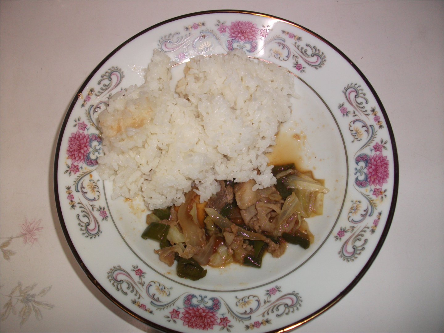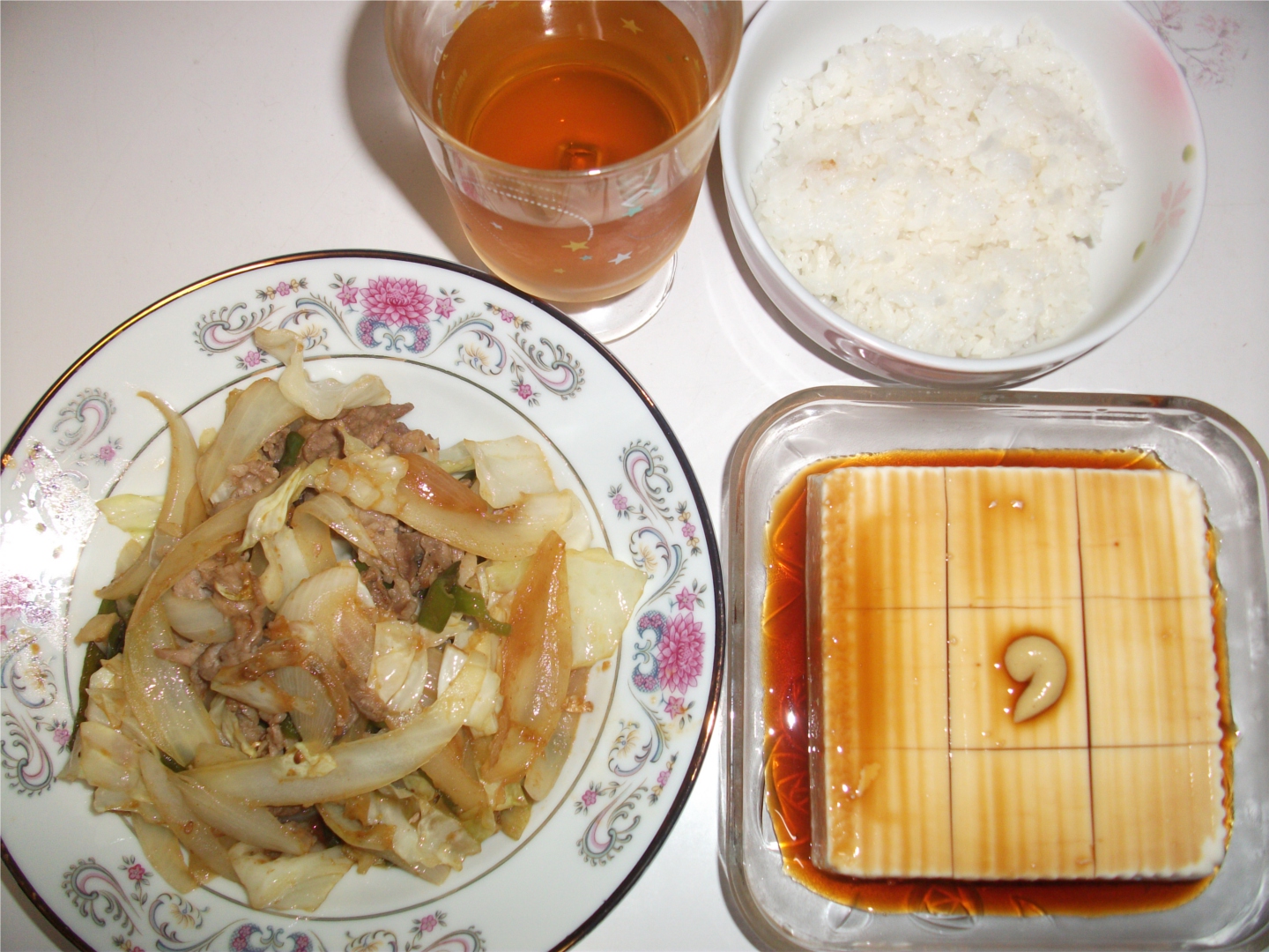 焼肉のタレを使った野菜炒めと冷奴1パック分。