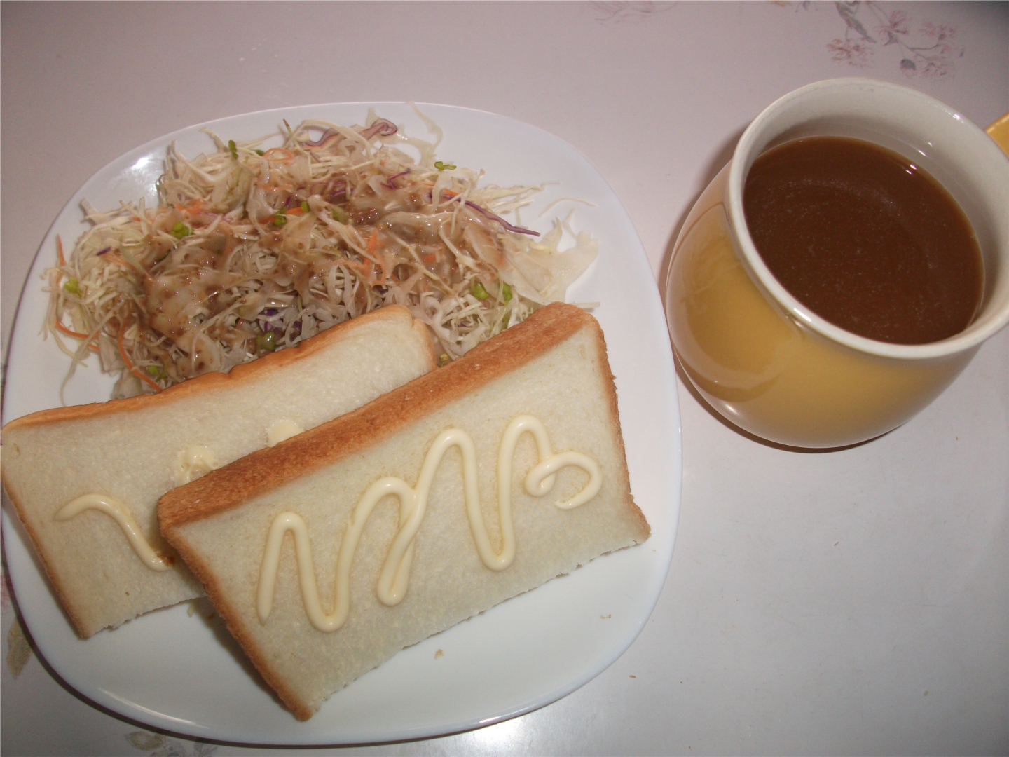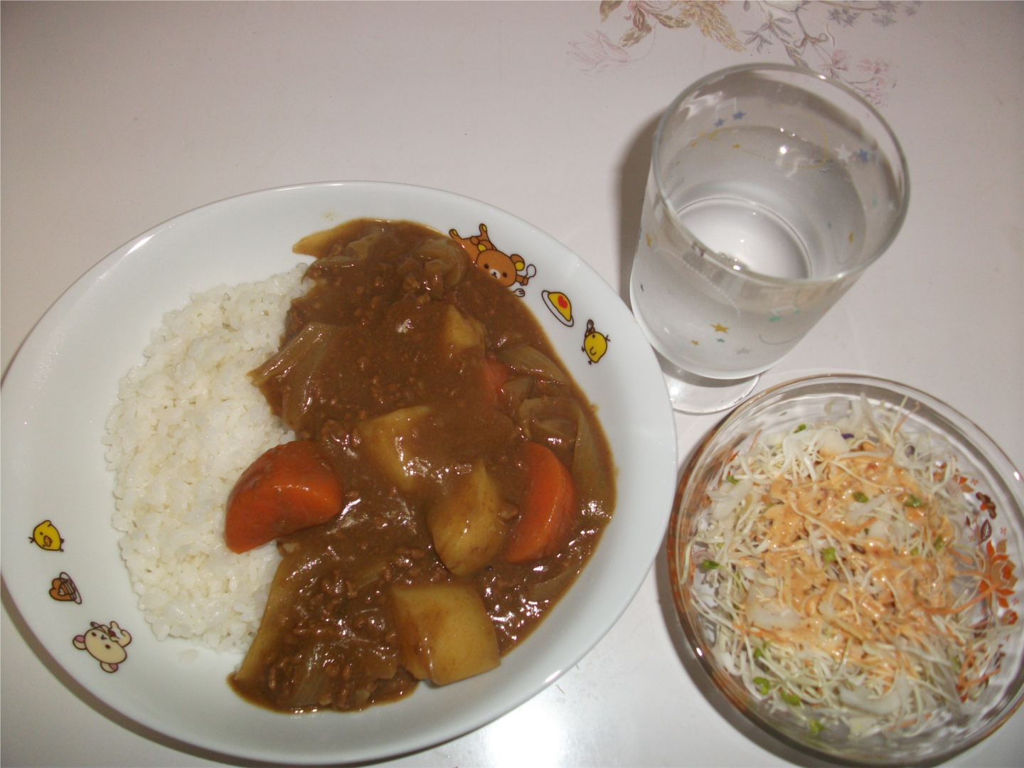 昨日は、一昨日のカレーが小盛りだったからかと御飯多めにし、サラダも付けました。