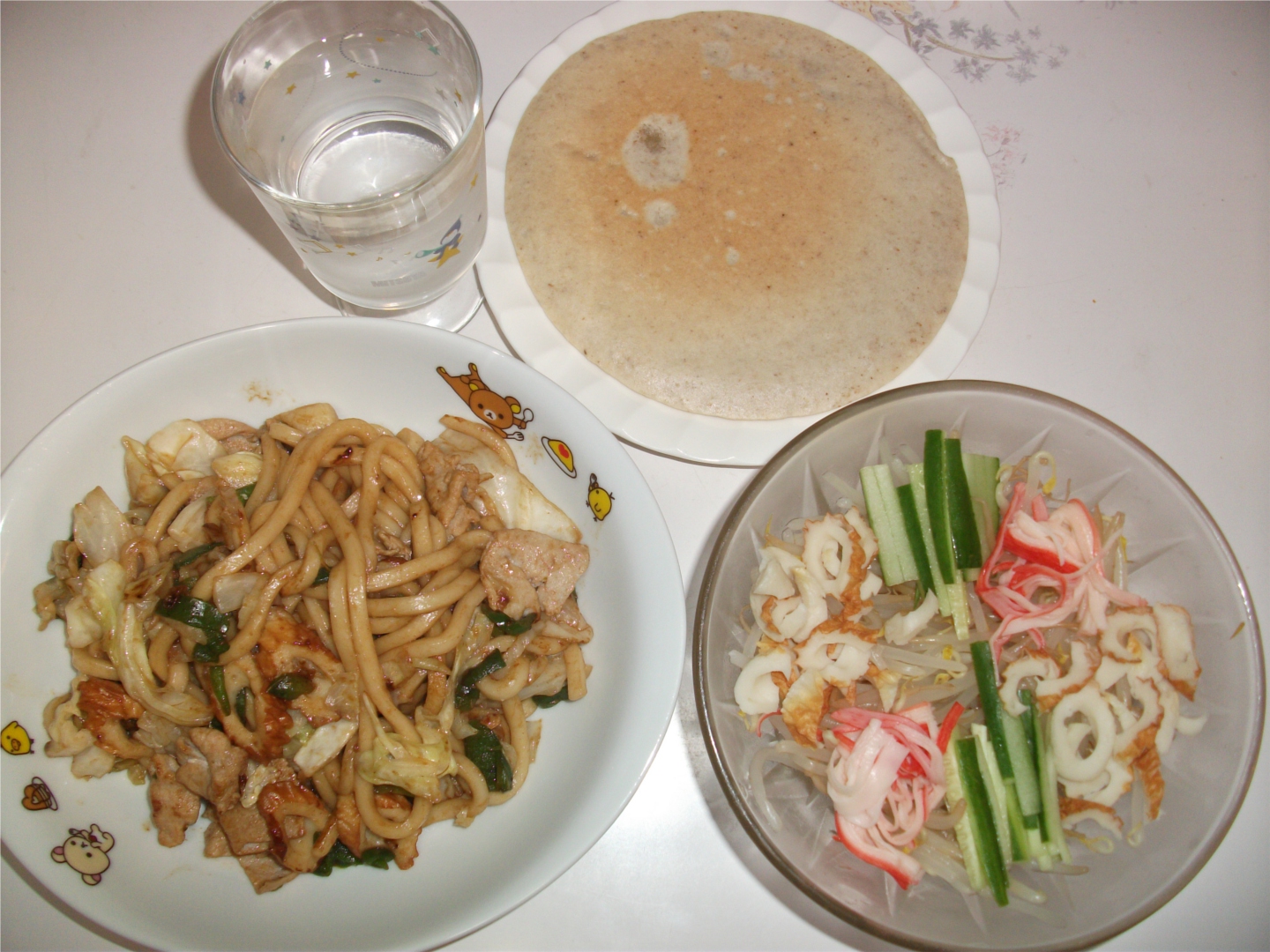 上記の冷モヤシとパンケーキ、焼きうどんはピーマンと竹輪を追加しました。