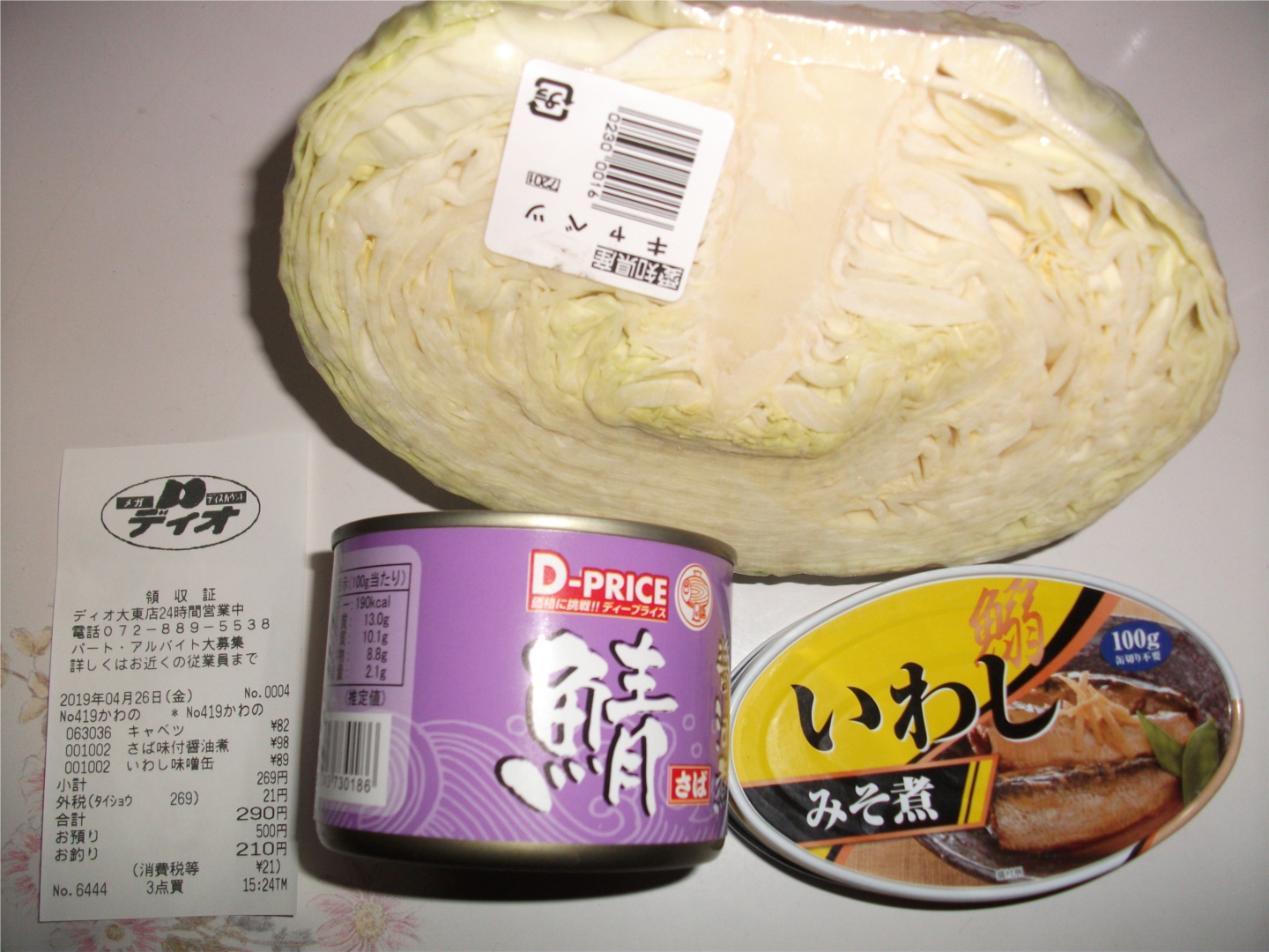 7品目だけの買い物で、全て値引き品だったが単価が高いので今日一番高い買い物になった。