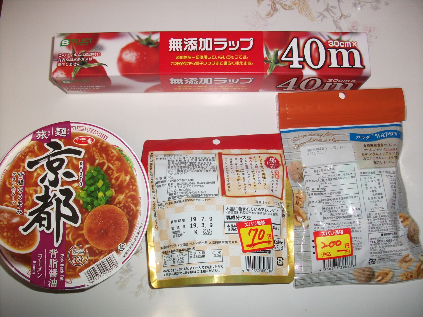 肝心な本来の目的である地方モノは、ポテチ1種・カップ麺2種のみだった。